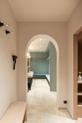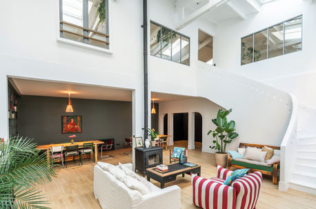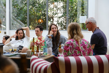 Comme une petite maison, le studio dispose d'une cuisine, de vestiaires, d'une grande table pour travailler ou se rassembler pour manger.